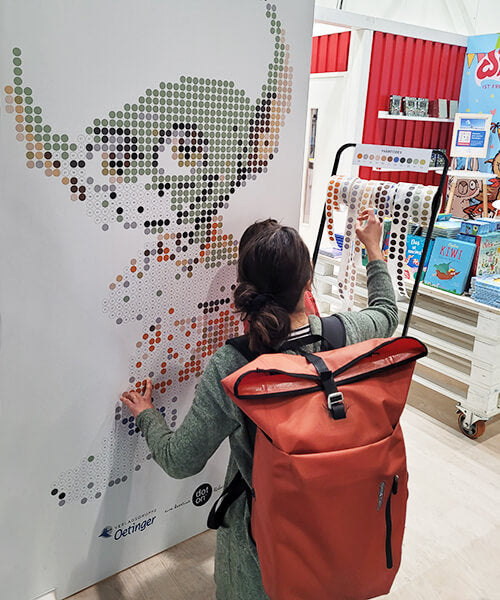 „Die Wand war ein toller Hingucker auf unserem Messestand! Unsere großen und kleinen Besucher haben das Motiv ruckzuck voll geklebt.”