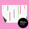 Ganz einfach: Du bekommst sechs Bögen mit Klebepunkten im Set mit deinem Kalender geliefert. Das sind über 600 Punkte in neun Farben. Du ordnest jeder Farbe ein Thema oder eine Person zu, beschriftest die Punkte und klebst sie auf den Kalender – fertig ist dein individuelles Planungssystem!