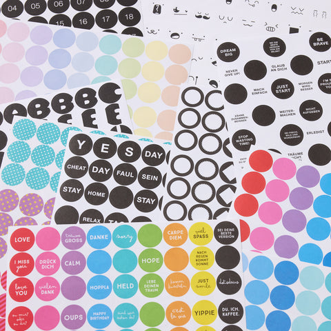 Bunte Klebepunkte sind flexibel und vielseitig einsetzbar: zum Planen, Markieren, Strukturieren oder kreativ Gestalten. Wähle aus vielen Farben, zwei verschiedenen Größen und Sets – ideal für Kalender, Workshops oder DIY-Projekte. Die kleinen, runden Helfer, wir nennen sie liebevoll dots - mit großem Potenzial!