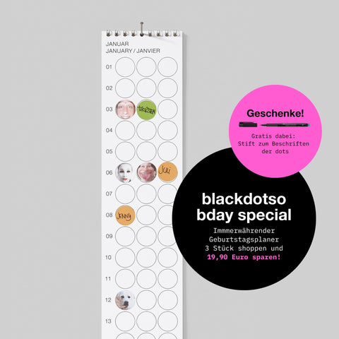 Gestalte deine eigenen dots, drucke sie direkt aus – und mach deinen Geburtstagsplaner so einzigartig wie deine Lieblingsmenschen.